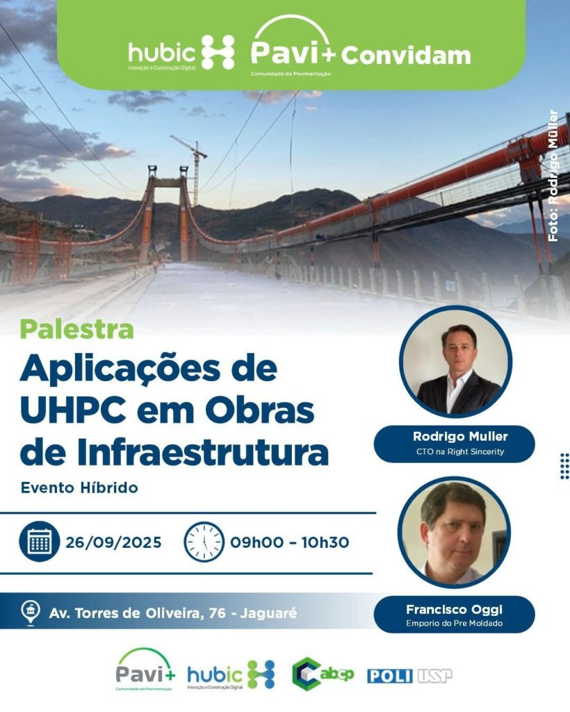 “Tech Talk: Uso de UHPC em Obras de Infraestrutura” será realizada no dia 26 de setembro, às 9h