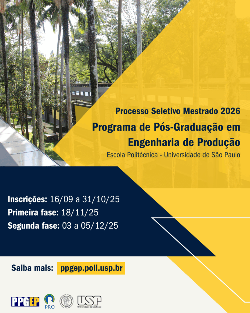Entre os dias 16 de setembro a 31 de outubro, as inscrições para o Programa de Mestrado da Pós-Graduação em Engenharia da Produção (PPGEP) da Escola Politécnica estão abertas. Planejado […]