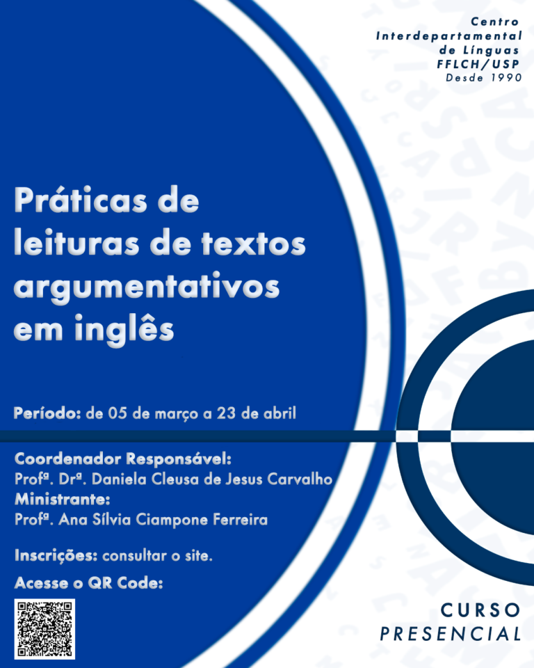 FFLCH-USP abre inscrições para curso “Práticas de leituras de textos argumentativos em inglês” 28/01/2026 Leia mais »
